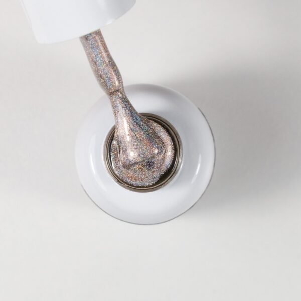MINI “Holographic” 6 ml gēla laka ir unikāla hologrāfiskā gēla laka, kas piešķir nagiem iespaidīgu gaismas spēli un krāsu efektu. Šī laka rada daudzpusīgu hologrāfisku spīdumu, kas mainās atkarībā no gaismas un kustības, piešķirot nagiem unikālu un burvīgu efektu. Polimerizācija: LED 60 sek. / UV 2 min. / CCFL 90 sek.